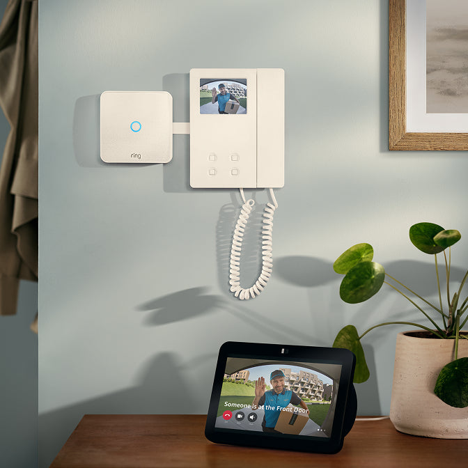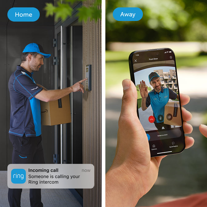 From a friend popping by to a can’t-miss delivery, you can see and/or speak to visitors and buzz them in, all from your smartphone. Upgrade your compatible audio or video intercom handset, so you can see and speak to whoever is at your building entrance and buzz them in using the Ring app.