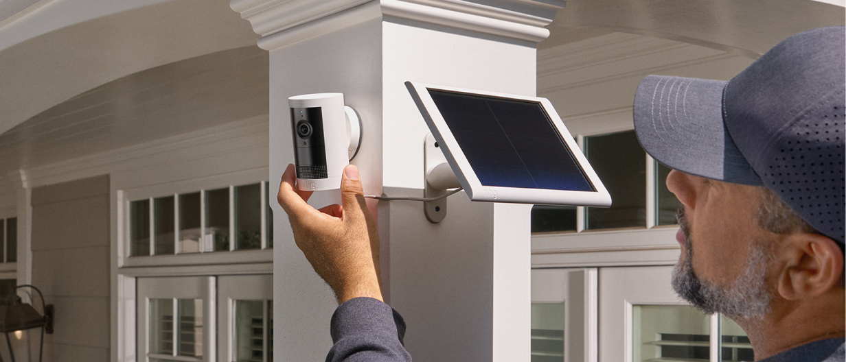 Add smart security to railings, pipes, or poles with the Ring Pole Mount for Stick Up Cam (all 2nd and 3rd generations), Stick Up Cam Pro, Spotlight Cam Battery or Spotlight Cam Solar without drilling any holes. Use the Pole Mount to mount your camera and solar panel, simultaneously or separately, for a new vantage point and to receive more sunlight. The Pole Mount can be easily moved and adjusted to give you the perfect position and stays secure with optional security ties.